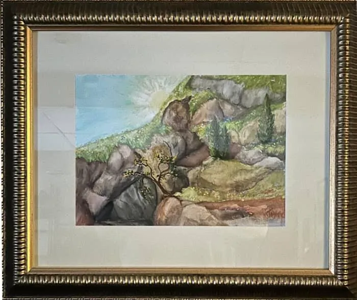18 x 25" Classic Gold-framed, white matted, Watercolor, Gouache, & Paint Pen painting by Doug Gazlay