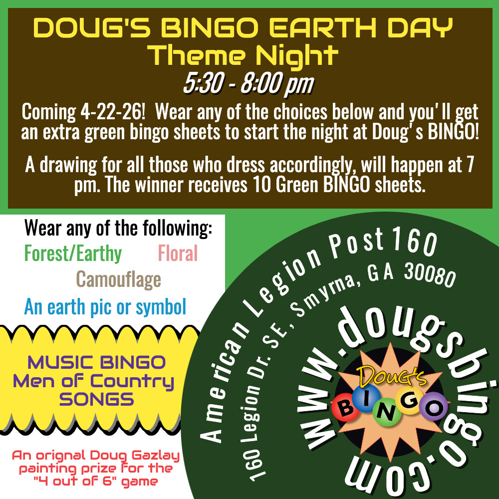 Winner recieves 2 game tickets each round; a free dauber, and a $2.50 coupon for DougArt purchase. Must inintial winner sheet the night you claim your prize. Never expires.